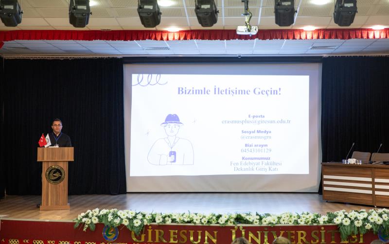 Ardından Erasmus+ Öğrenci Hareketlilikleri Yetkilisi Öğr. Gör. Murat Yaman, Erasmus+ programındaki hareketlilik türlerini, öğrenciler için başvuru koşullarını ve değerlendirme süreçlerini dinleyicilerle paylaştı. Öğr. Gör. Yaman konuşmasında, Giresun Üniversitesi’nin Erasmus+ faaliyetlerine katılım oranındaki artışa değinerek, öğrencilerin farklı ülkelerde edindikleri akademik ve kültürel deneyimlerin üniversitenin uluslararasılaşma hedeflerine katkı sunduğunu belirtti.